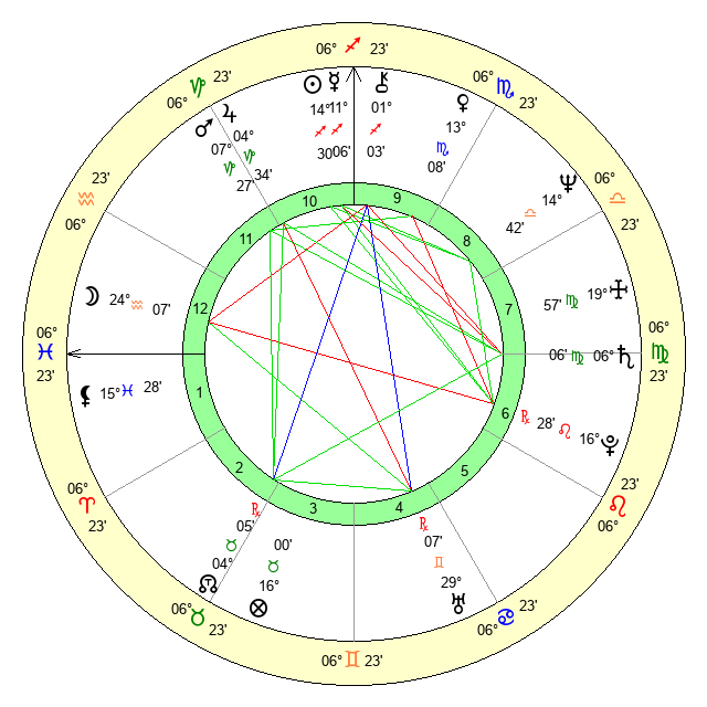 | Saturn | 6 Virgo 35 | 25 Pisces 7 | 3 Virgo 20 |