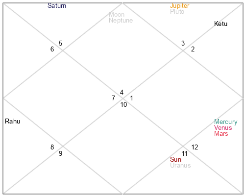 | Rahu | 7 Sagittarius 54 | 27 Pisces 41 | 2 Sagittarius 17 |