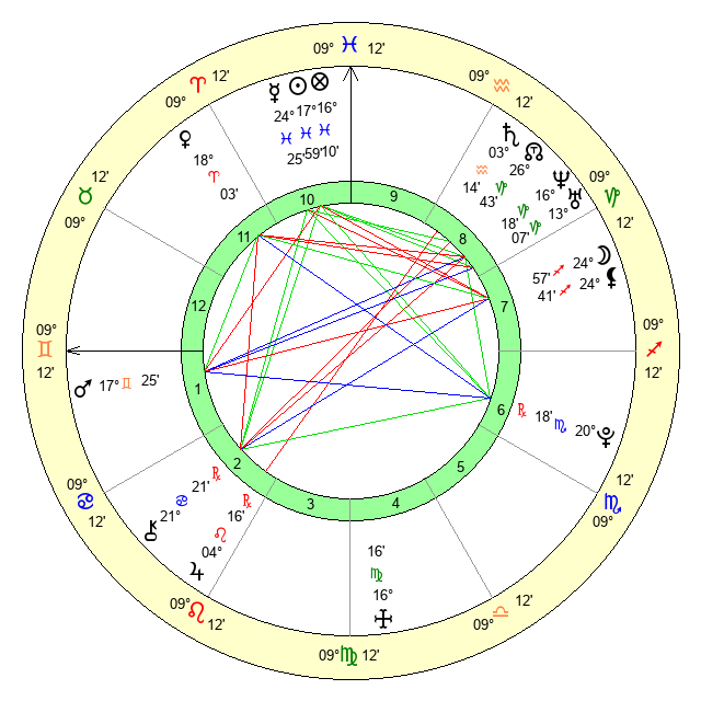 | Moon | 24 Sagittarius 52 | 18 Cancer 39 | 16 Pisces 32 |