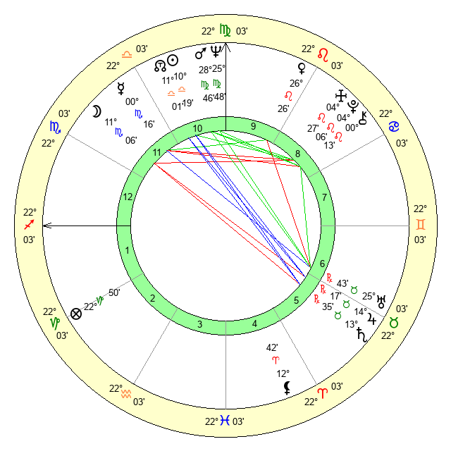 | Mars | 28 Virgo 47 | 7 Scorpio 43 | 24 Scorpio 33 |