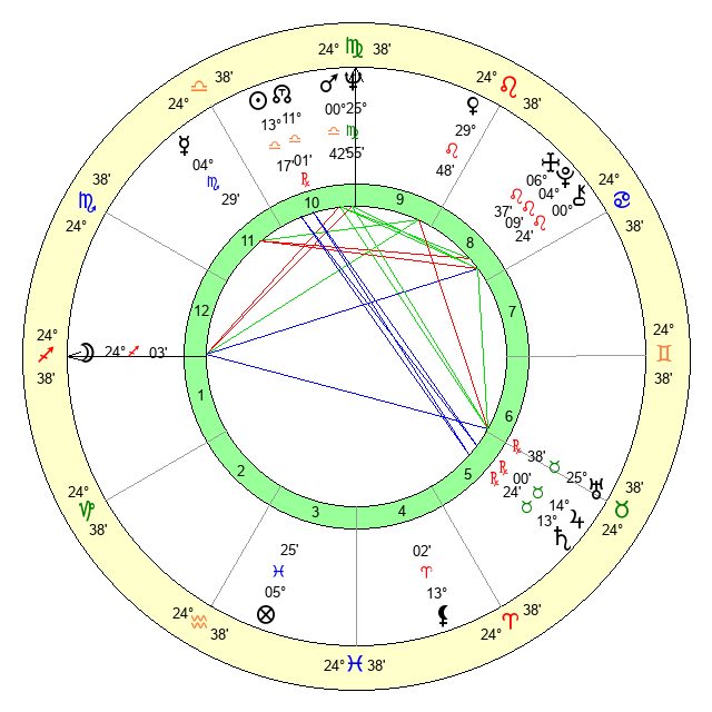 | Moon | 24 Sagittarius 6 | 7 Aries 24 | 2 Aquarius 9 |