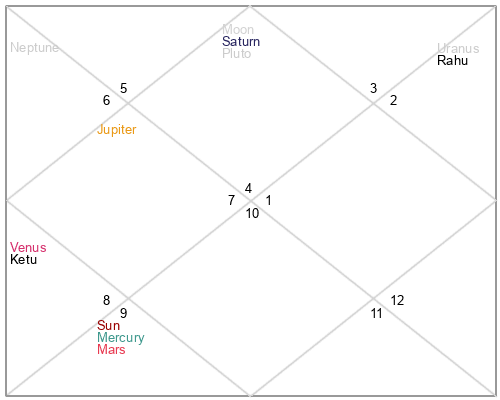 | Ketu | 9 Sagittarius 47 | 11 Virgo 48 | 5 Sagittarius 36 |