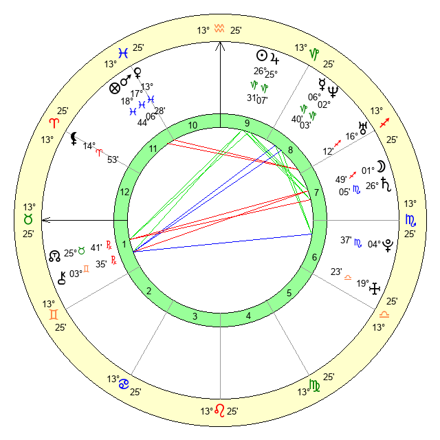 | Mars | 17 Pisces 7 | 25 Cancer 58 | 17 Aries 10 |