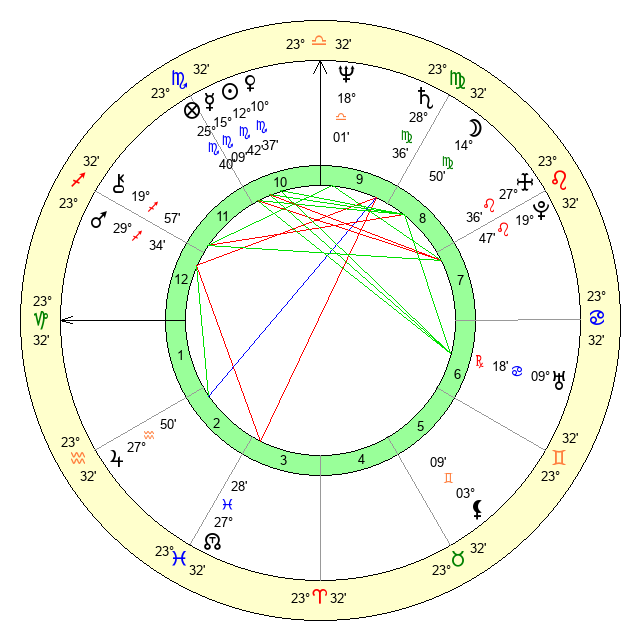 | Saturn | 29 Virgo 5 | 25 Pisces 29 | 2 Libra 50 |