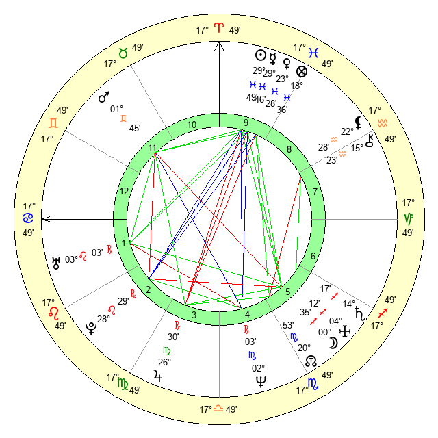 | Sun | 29 Pisces 49 | 0 Aries 20 | 6 Gemini 7 |