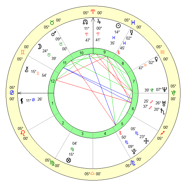 | Mars | 9 Taurus 0 | 17 Cancer 34 | 4 Gemini 41 |