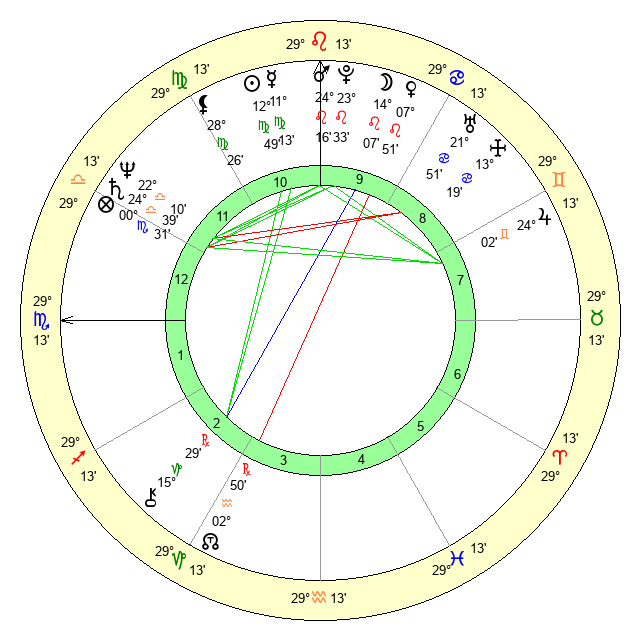 | Mercury | 11 Virgo 14 | 6 Virgo 5 | 19 Scorpio 26 |