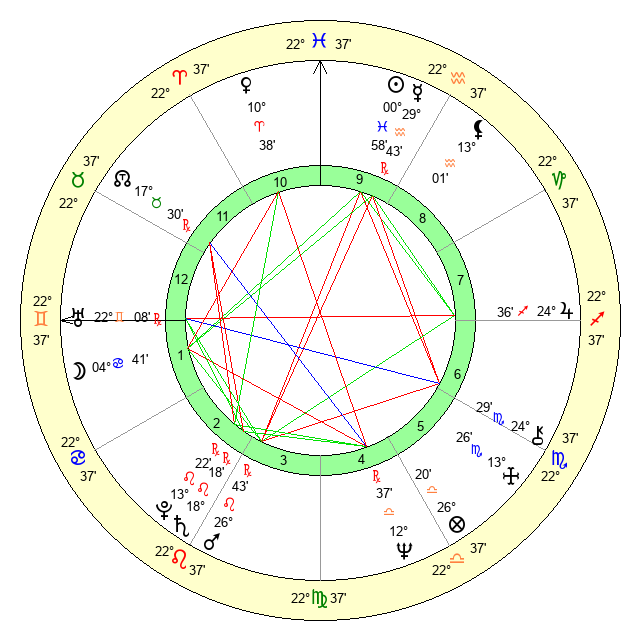 | Sun | 0 Pisces 59 | 2 Pisces 18 | 17 Taurus 1 |