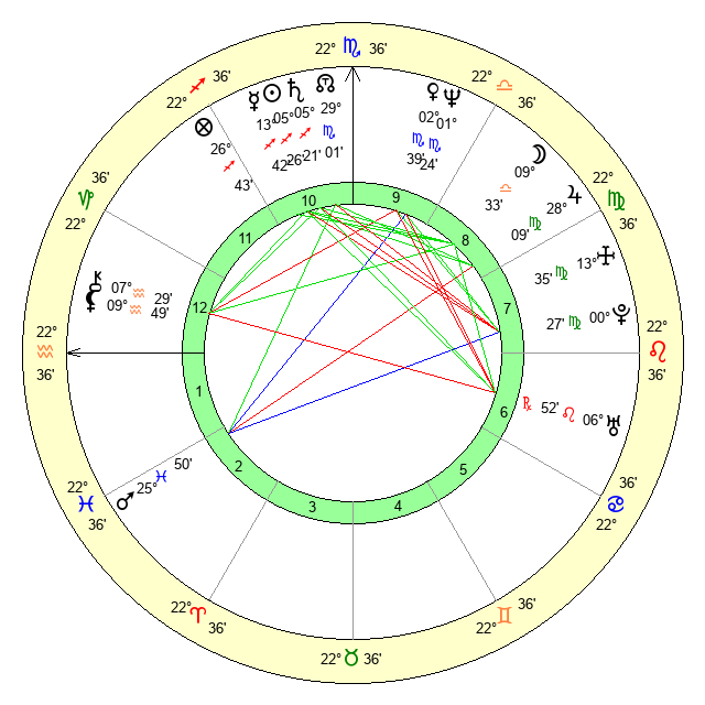 | Pluto | 0 Virgo 26 | 1 Aquarius 49 | 29 Leo 31 |
