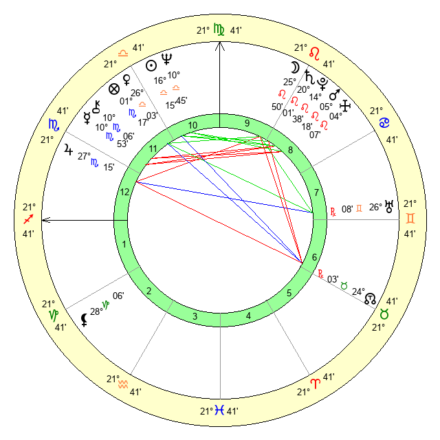 | Mercury | 10 Scorpio 54 | 5 Scorpio 31 | 0 Capricorn 43 |