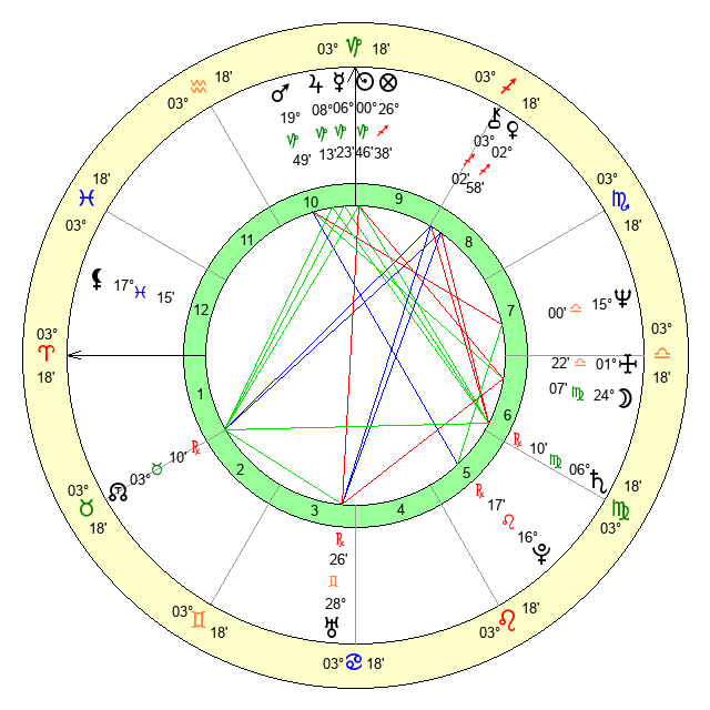 | Saturn | 6 Virgo 40 | 25 Pisces 36 | 2 Virgo 5 |
