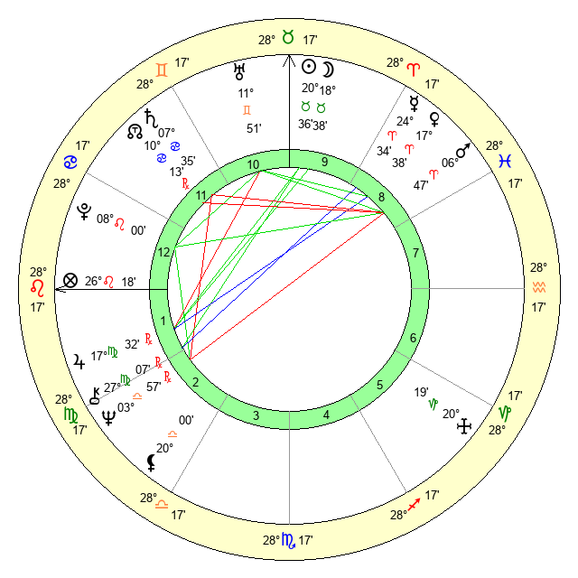 | Moon | 18 Taurus 40 | 10 Scorpio 19 | 20 Aries 41 |