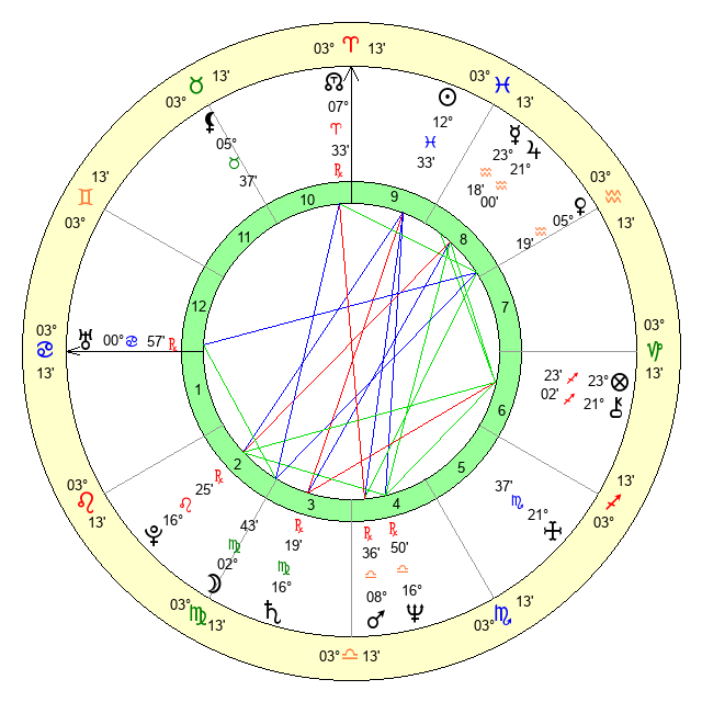 | Mars | 8 Libra 36 | 17 Cancer 22 | 23 Virgo 10 |