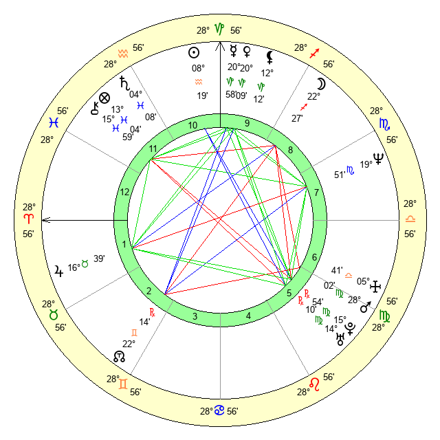 | Mars | 28 Virgo 3 | 21 Cancer 35 | 11 Virgo 40 |
