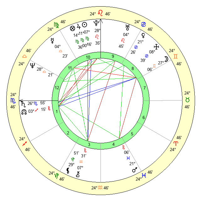| Saturn | 27 Scorpio 23 | 29 Pisces 59 | 3 Sagittarius 25 |