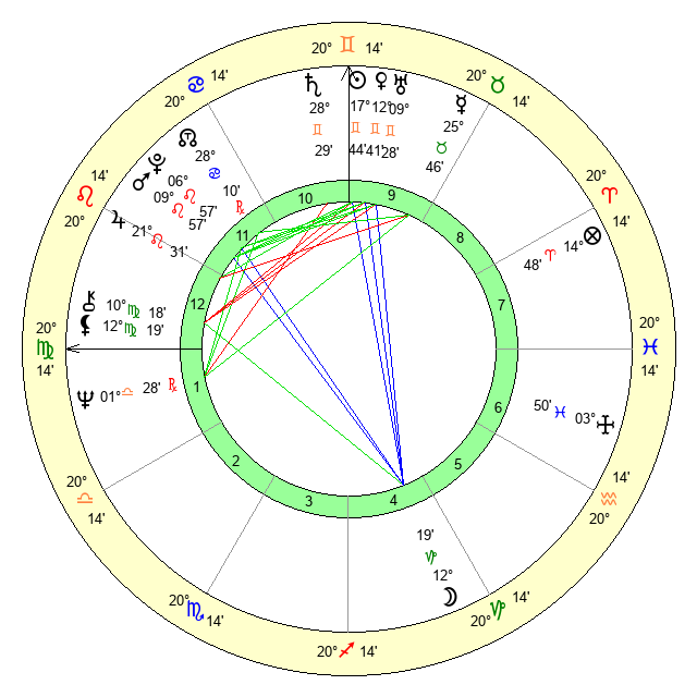 | Sun | 17 Gemini 45 | 18 Gemini 9 | 5 Virgo 14 |