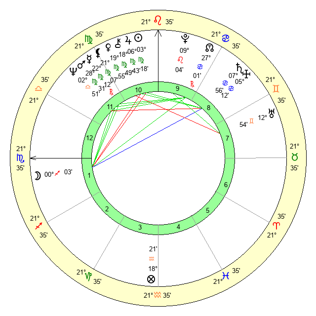 | Mars | 28 Virgo 32 | 12 Libra 30 | 22 Scorpio 57 |