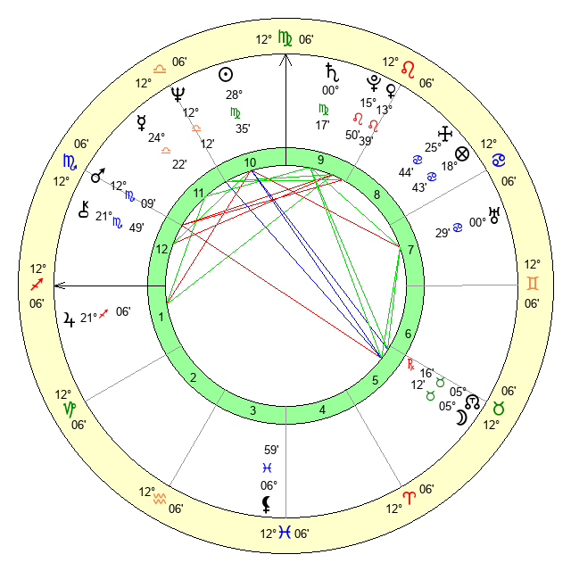 | Saturn | 0 Virgo 44 | 28 Pisces 21 | 6 Virgo 37 |