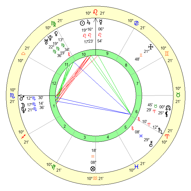 | Mercury | 6 Leo 55 | 4 Leo 21 | 10 Scorpio 55 |