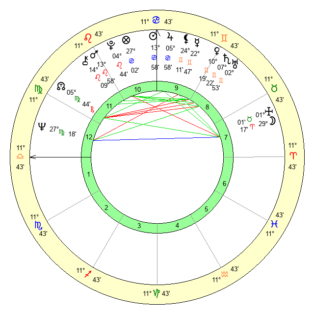 | Sun | 13 Cancer 58 | 14 Cancer 52 | 3 Libra 57 |