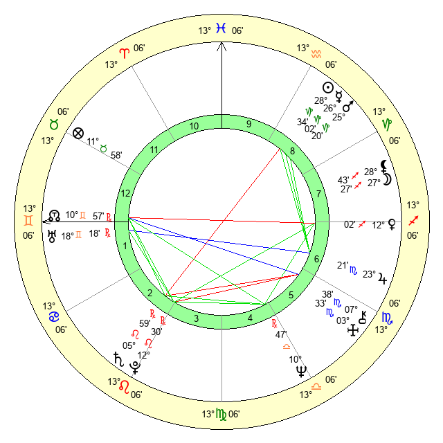 | Jupiter | 23 Scorpio 15 | 11 Gemini 42 | 26 Scorpio 32 |