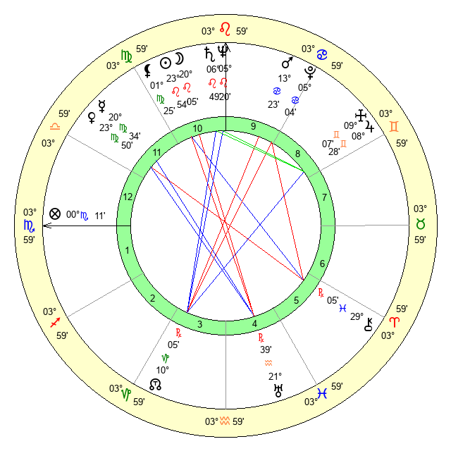 | Venus | 23 Virgo 51 | 20 Cancer 10 | 27 Capricorn 53 |
