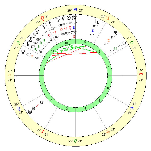 | Moon | 9 Virgo 12 | 16 Cancer 48 | 29 Leo 58 |