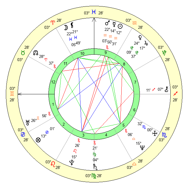 | Neptune | 15 Libra 5 | 27 Pisces 59 | 13 Libra 24 |