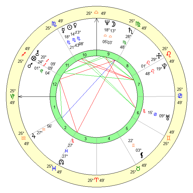 | Saturn | 29 Virgo 17 | 25 Pisces 25 | 2 Libra 49 |