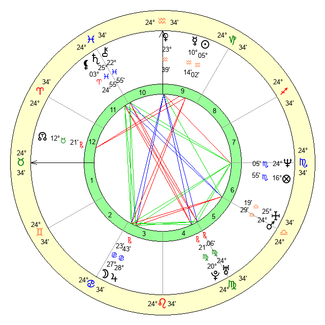 | Neptune | 24 Scorpio 6 | 27 Pisces 47 | 24 Scorpio 8 |