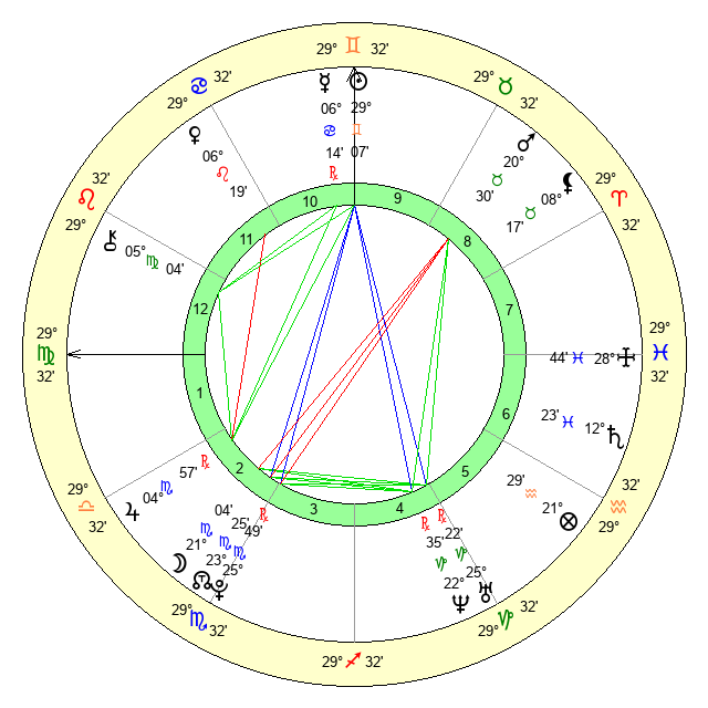 | Moon | 21 Scorpio 8 | 24 Aries 37 | 13 Capricorn 50 |