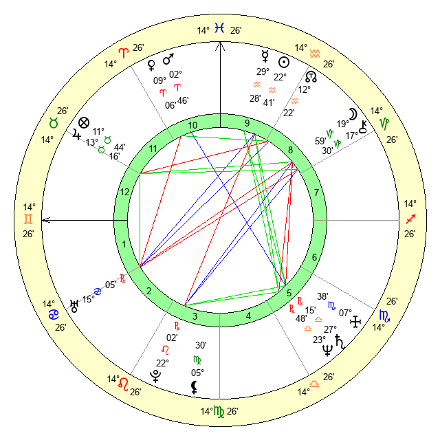 | Moon | 20 Capricorn 4 | 12 Leo 54 | 14 Virgo 14 |