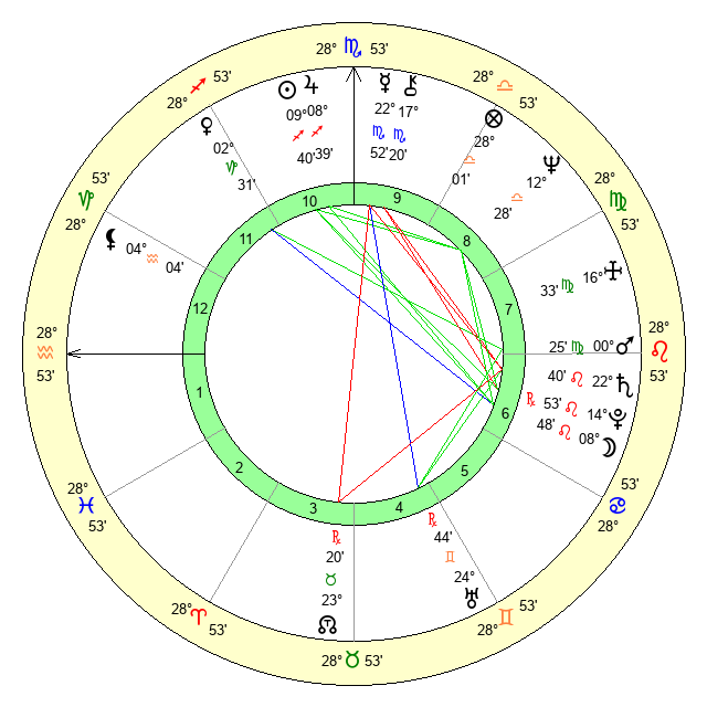 | Mercury | 22 Scorpio 53 | 21 Scorpio 26 | 1 Pisces 55 |