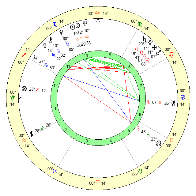 | Mercury | 14 Scorpio 23 | 10 Scorpio 15 | 5 Capricorn 56 |