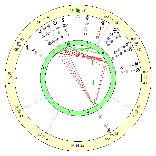 | Neptune | 5 Libra 55 | 0 Aries 46 | 8 Libra 23 |