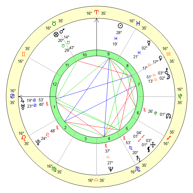 | Saturn | 21 Scorpio 24 | 22 Pisces 55 | 17 Scorpio 0 |