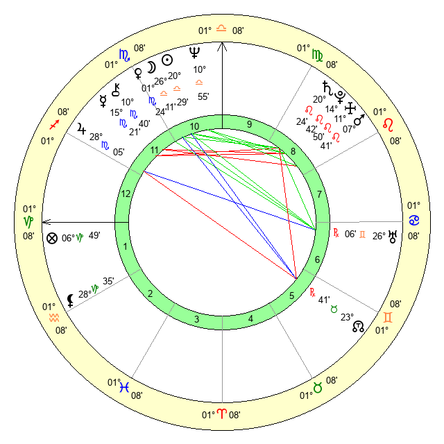 | Mars | 7 Leo 41 | 15 Scorpio 18 | 7 Virgo 13 |
