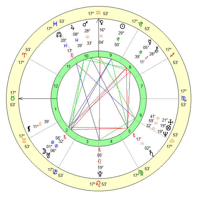| Saturn | 2 Libra 50 | 16 Pisces 11 | 28 Virgo 23 |