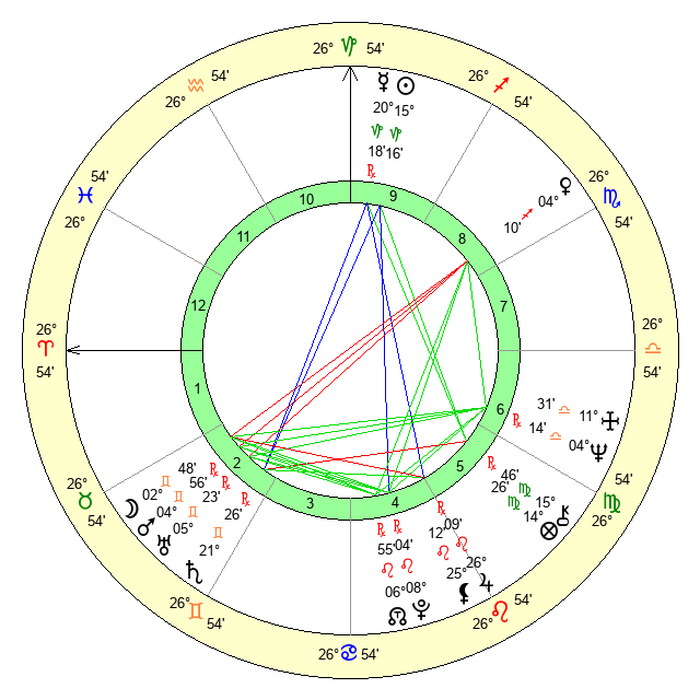 | Neptune | 4 Libra 16 | 27 Pisces 23 | 2 Libra 46 |