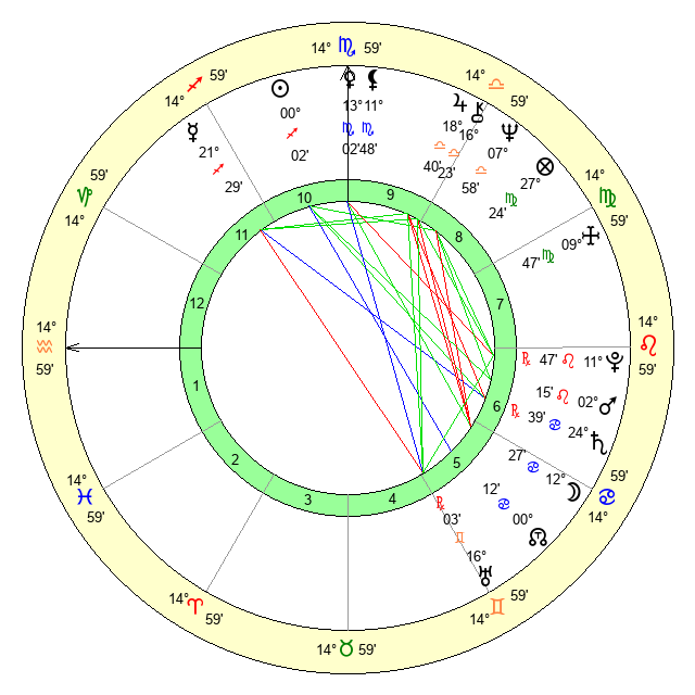 | Neptune | 7 Libra 59 | 29 Pisces 27 | 8 Libra 21 |