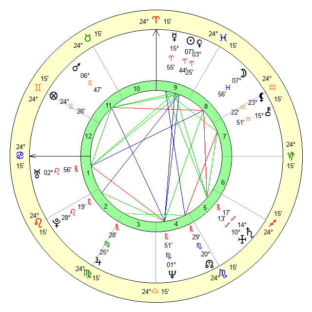 | Mars | 6 Gemini 47 | 22 Cancer 34 | 19 Cancer 28 |