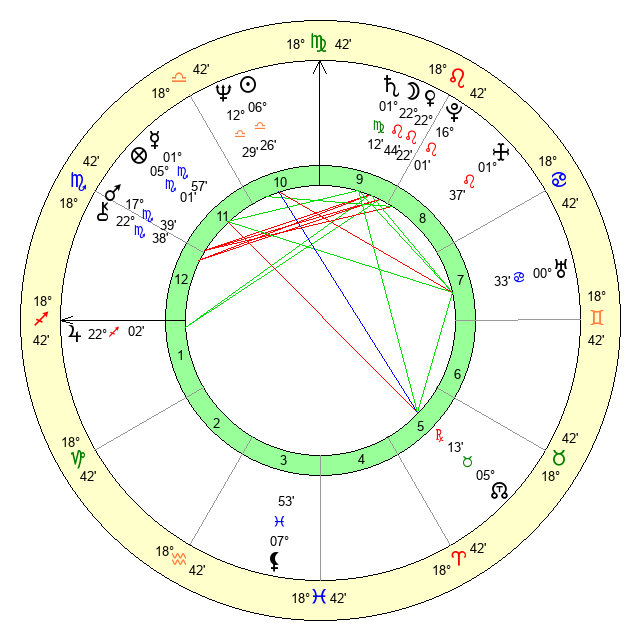 | Saturn | 1 Virgo 39 | 27 Pisces 44 | 6 Virgo 42 |