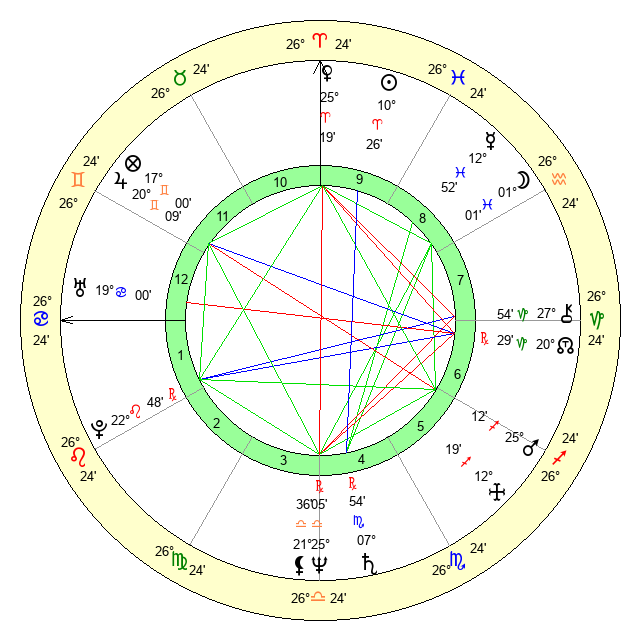 | Venus | 25 Aries 19 | 27 Pisces 41 | 21 Cancer 41 |