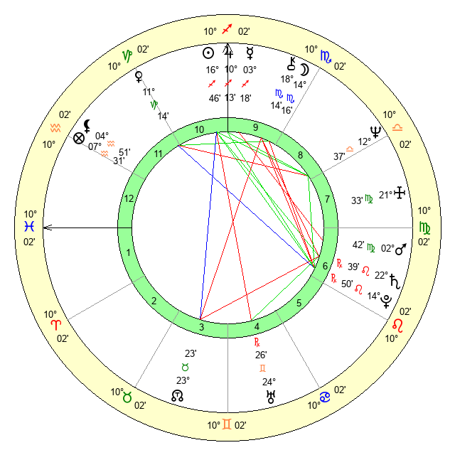 | Moon | 14 Scorpio 10 | 21 Leo 57 | 20 Virgo 0 |