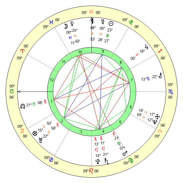 | Moon | 0 Pisces 14 | 4 Leo 16 | 2 Capricorn 43 |