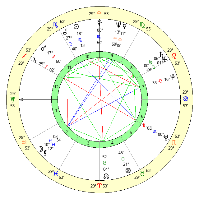 | Neptune | 14 Libra 0 | 29 Pisces 36 | 15 Libra 8 |