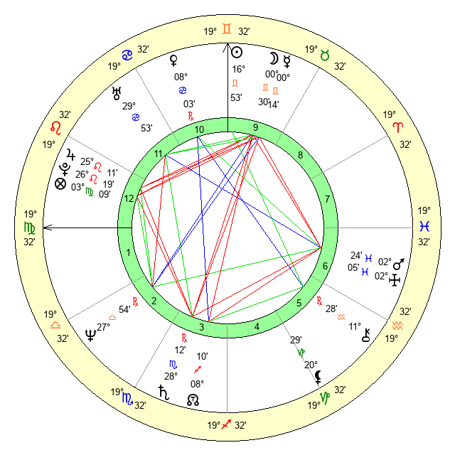| Moon | 0 Gemini 30 | 7 Scorpio 9 | 19 Sagittarius 17 |