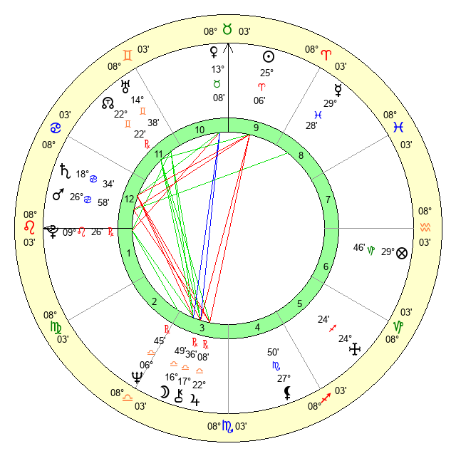 | Venus | 13 Taurus 9 | 24 Pisces 47 | 18 Leo 16 |