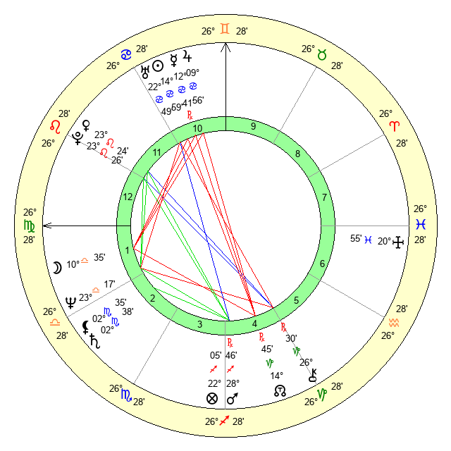 | Venus | 23 Leo 24 | 3 Gemini 20 | 8 Scorpio 55 |
