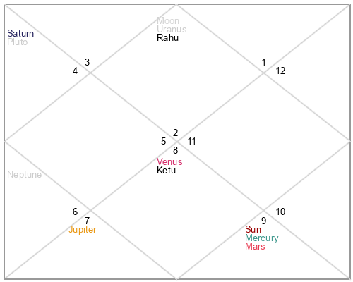 | Ketu | 10 Sagittarius 0 | 12 Virgo 1 | 5 Sagittarius 49 |